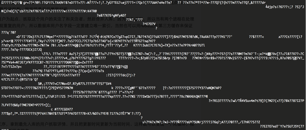 1、用户索引进程组先以一个用户为起点,抓取这个用户的关注了和关注者,然后合并入库,因为是多进程,所以当有两个进程在处理同一个用户入库的时候就会出现重复的用户,所以数据库用户名字段一定要建立唯一索引,当然也可以用redis这些第三方缓存来保证原子性,这个就见仁见智了。