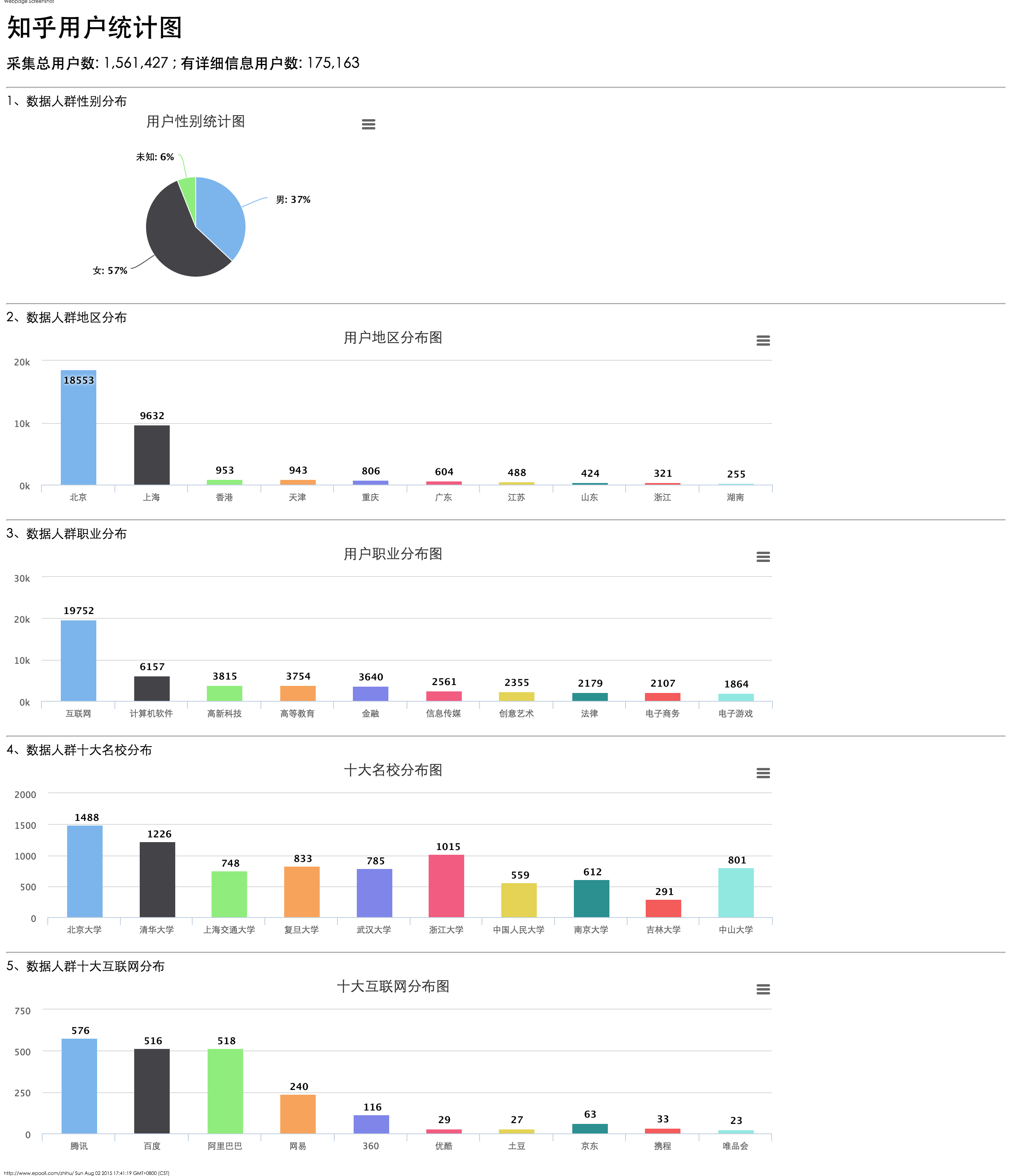 下面是利用这些数据做出来的一些有趣的图表,实时图表数据可以去 http://www.epooll.com/zhihu/ 上看