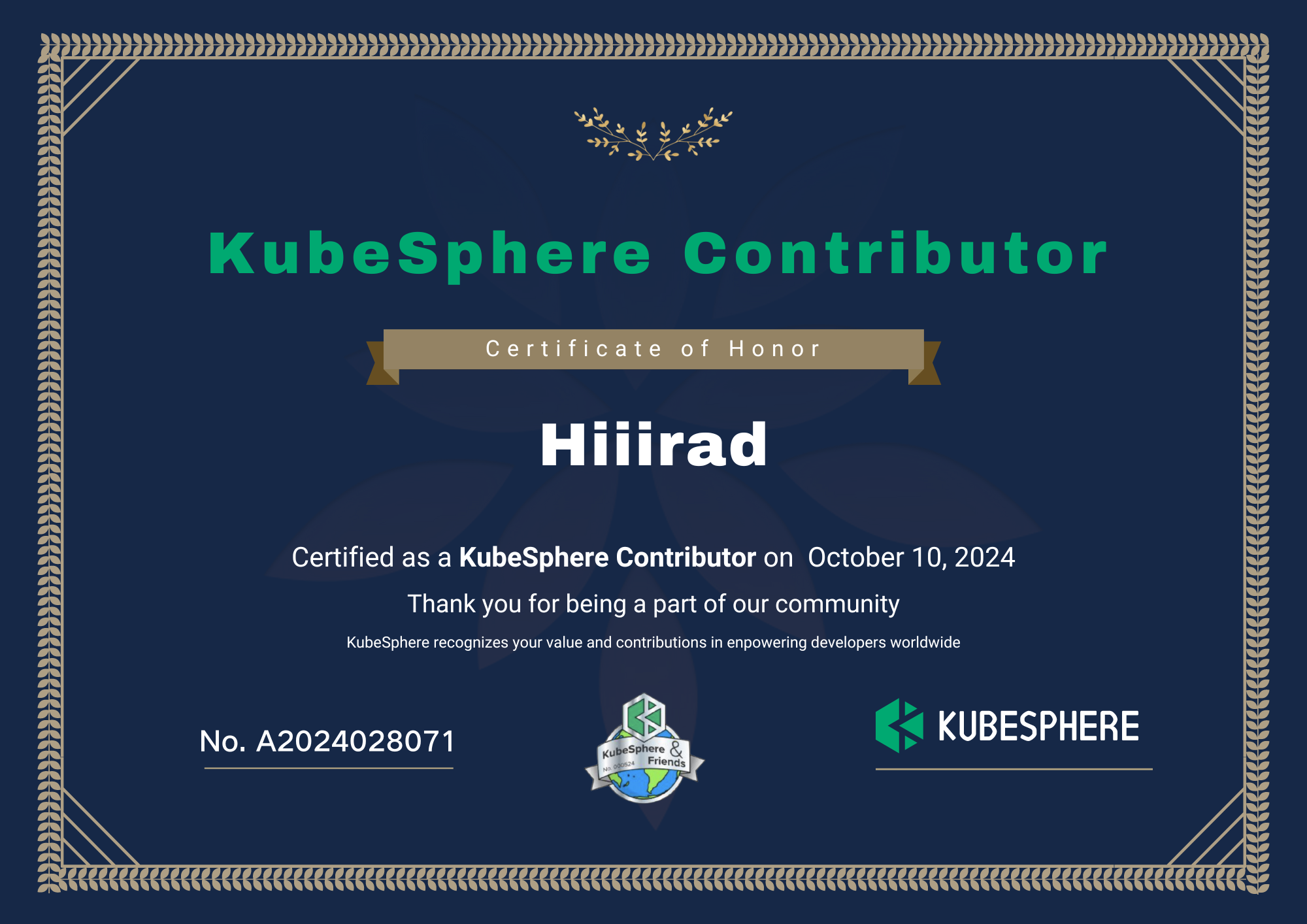 两周内共有 1 位新晋 KubeSphere contributor(GitHub ID 为:Hiiirad),感谢对社区的贡献!