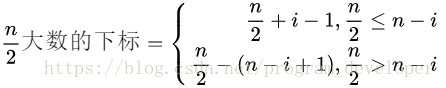 2.如果你的第n/2大的数在断点的前面,那么你可以把断点后边小于第n/2大的数给算上,然后在往前面查找到第n/2大的数。下标计算公式如下: