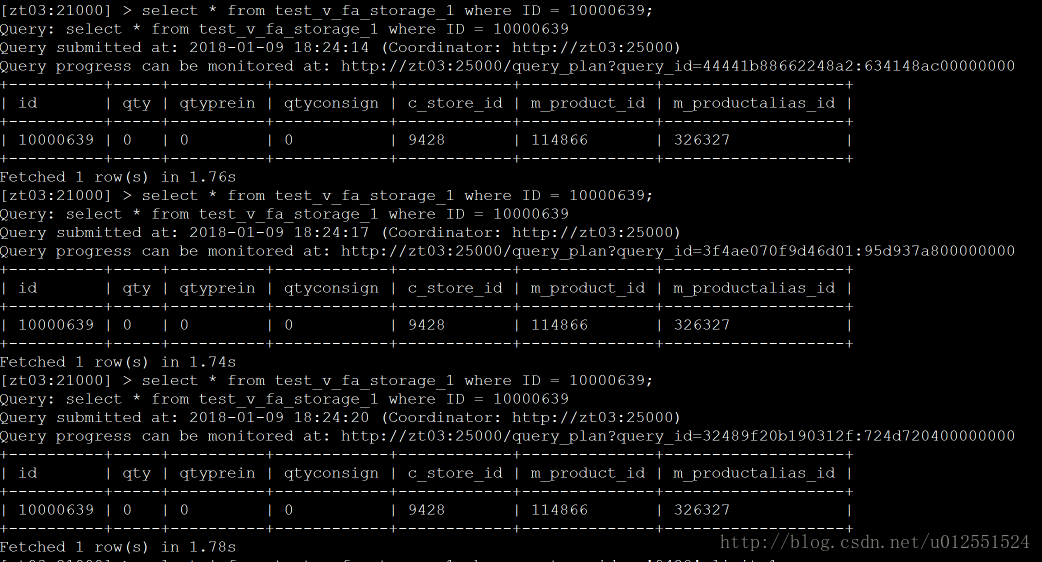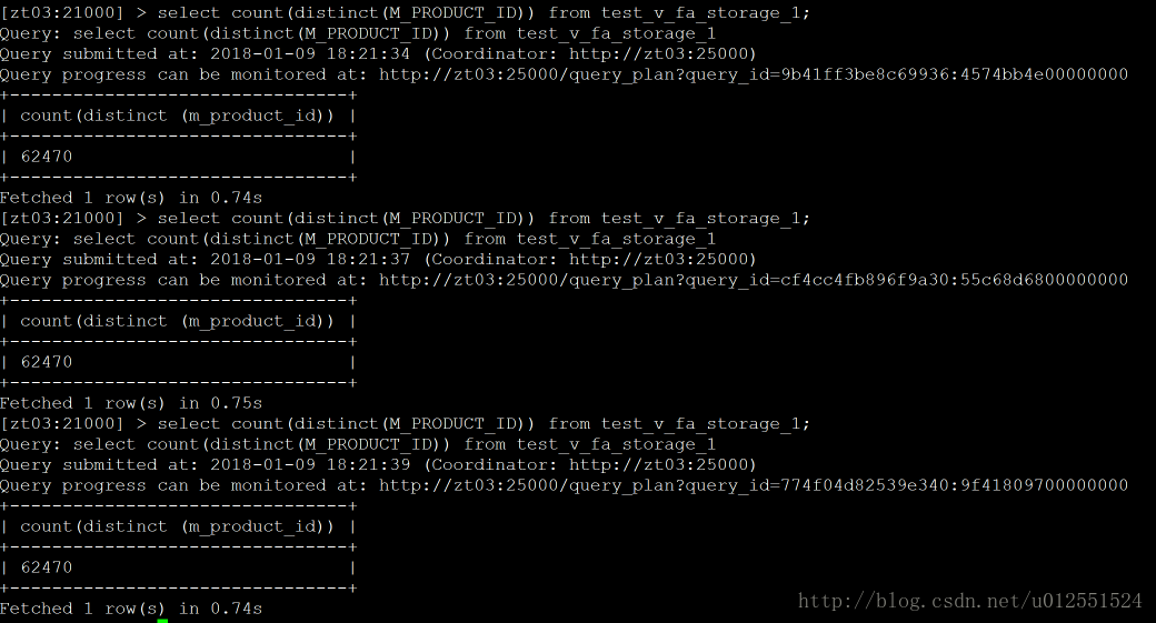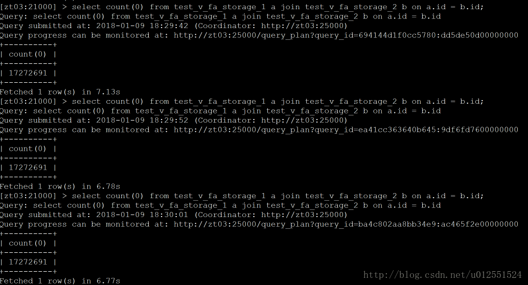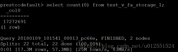 1s(presto目前只精确到整数,所以小于1s也是显示1s)