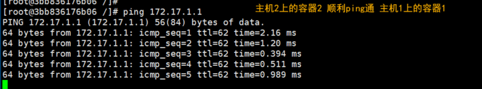 从container1 发往 container2 的数据包,首先发往container1的“网关”docker0,然后通过查找主机1的路由得知需要将数据包发给主机2,数据包到达主机2后再转发给主机2的docker0,最后由其将数据包转到container2中;反向原理相同,不再赘述。