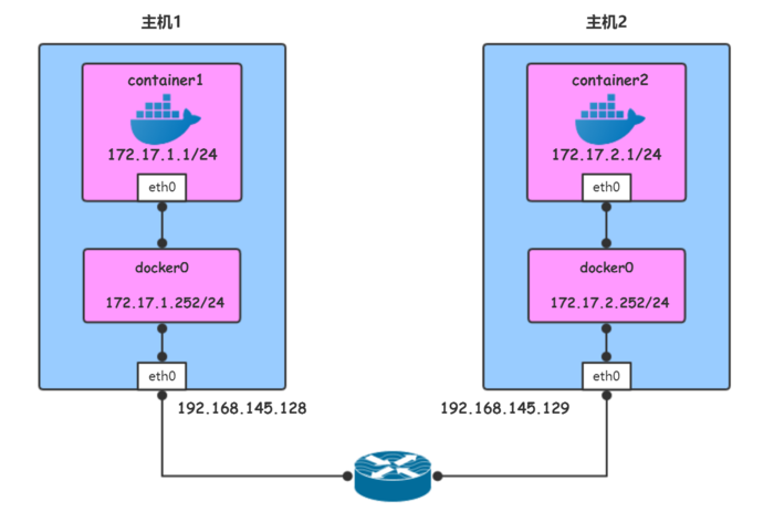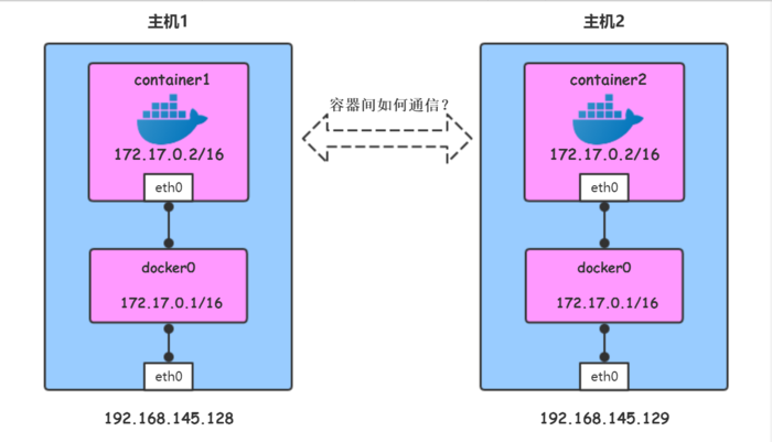 此时两台主机上的Docker容器如何直接通过IP地址进行通信?