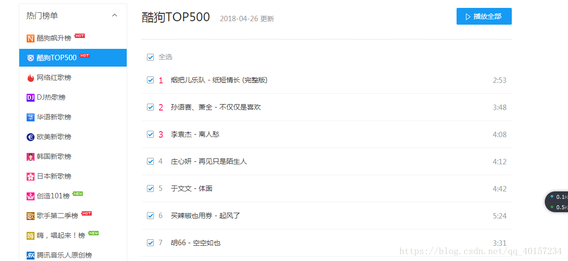 大家好,我是chilly,下面给大家分享本人爬取酷狗音乐top100的音频的案例