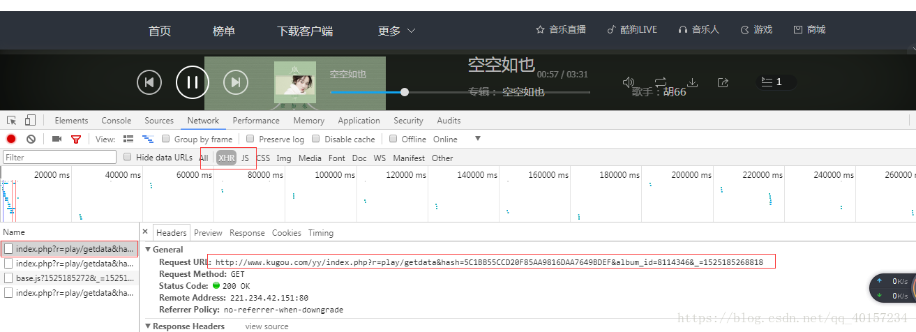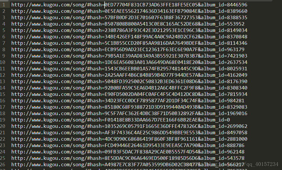 到了这里我们已经成功一大半了,因为我们已经拿到了每首歌曲对应的hash参数,我们只需要对这个参数简单的构造