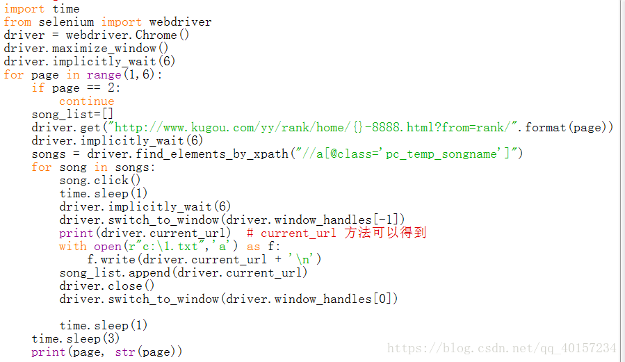 依次点击每首歌曲,然后获取url,返回前一个页面,继续进入下一个歌曲的界面,获取url,最后将结果保存在文件中。