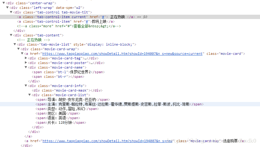 二、爬取淘票票正在热映的电影