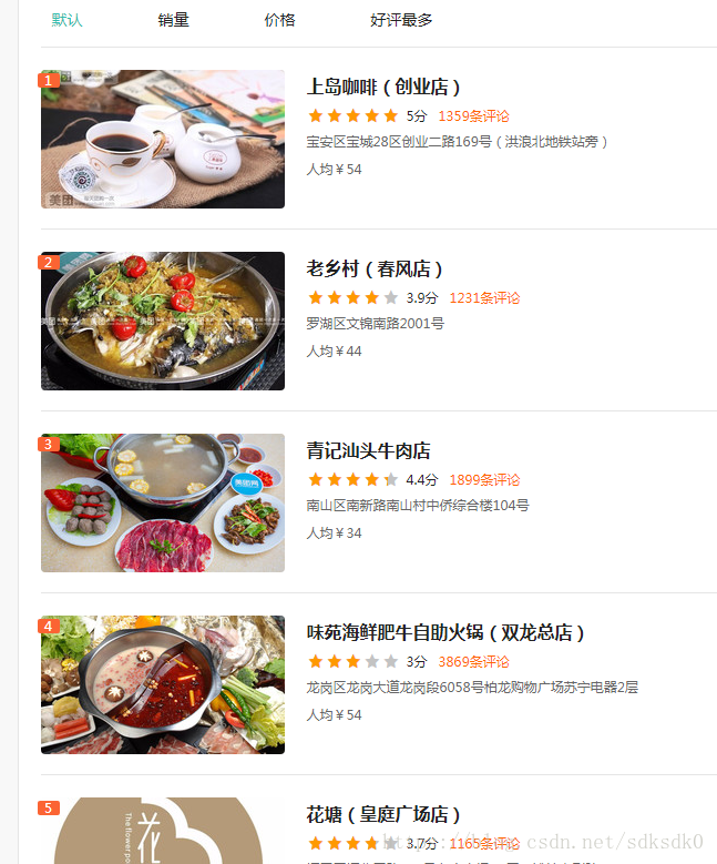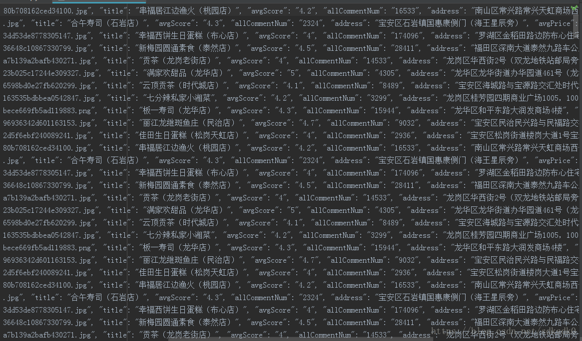 三、爬取美团(深圳)美食店铺信息,评分大于4.0分的店铺