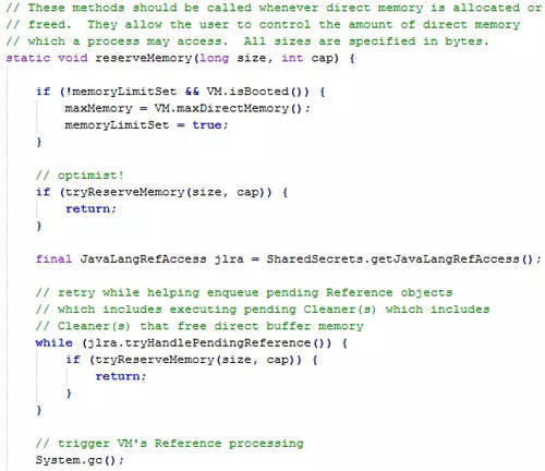 1. 最乐观的情况:可用堆外内存足够,reserveMemory 方法返回 true,该方法结束。