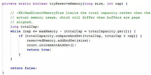 1.如果可用堆外内存足以分配给当前要创建的堆外内存大小时,直接返回 True;