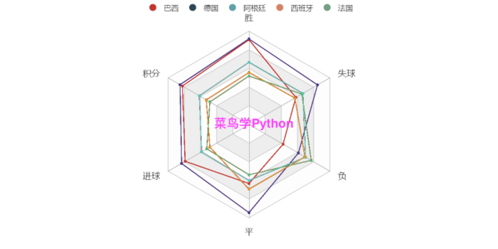 radar.add("法国", value_fg, item_color="#43CD80")四、传奇射手