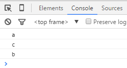 这个结果很容易理解,因为我setTimeout里的内容是在100ms后执行的嘛,当然是先输出a,再输出c,100ms后再输出setTimeout里的b嘛。