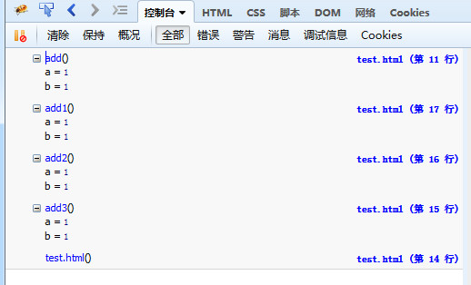 function add1(a,b){return add(a,b);}</script>控制台输出信息: