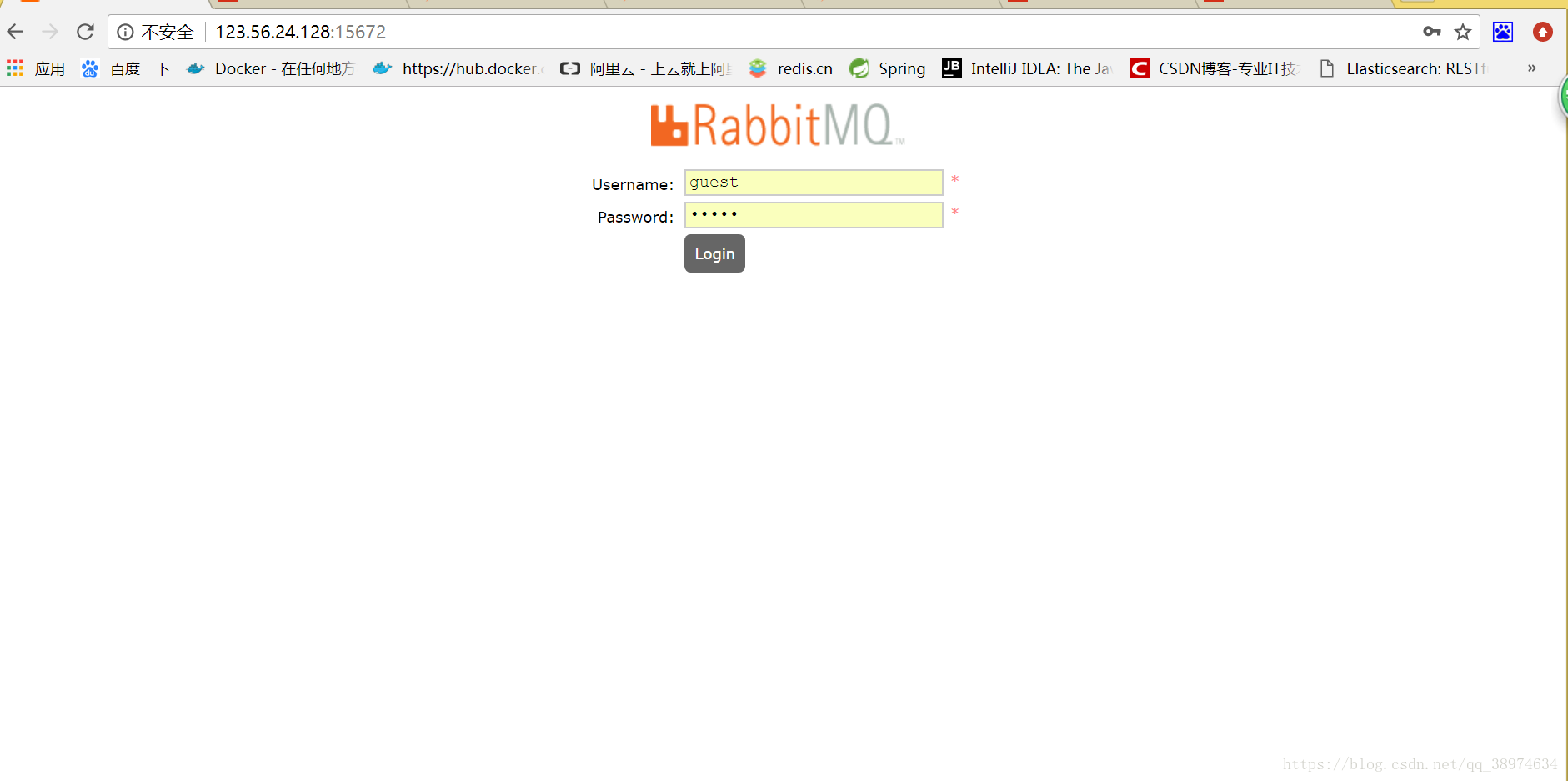 可以看到5672端口和15672端口已经打开,在浏览器输入IP地址:15672端口号,出现以下信息就说明没有任何问题了。