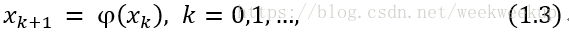 这称为一种不动点迭代法, 称为迭代函数。由(1.3)式产生的序列 {xk}如果满足 ,