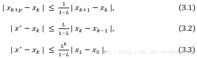 定理3.1描述了对任意的x0∈[a,b],{xk}收敛到[a,b]唯一的不动点x*,这可以说是在区间[a,b]上的全局收敛性。