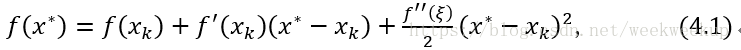 其中ξ在xk和x*之间。因为f(x*)=0,如果f'(xk)≠ 0,略去最后一项即得