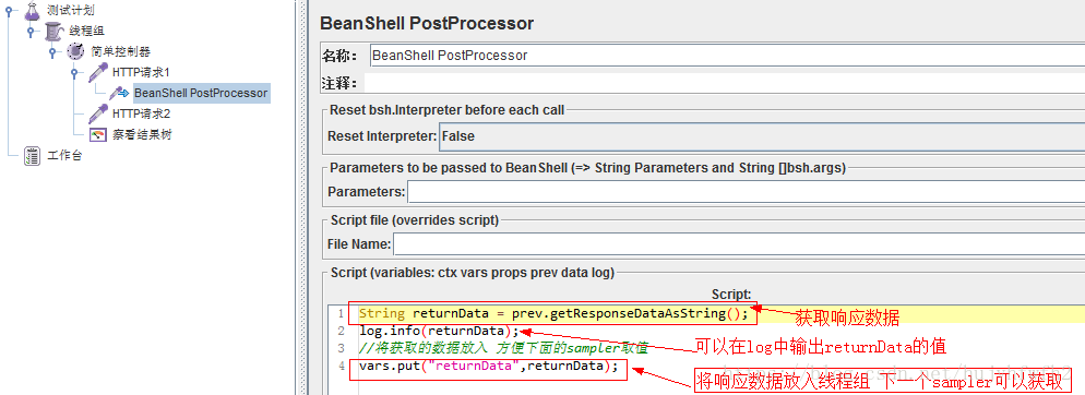 1.2:Beanshell后置取样器获取HTTP请求1所有响应数据returnData和其中单独的数据