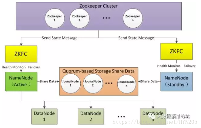 为了提供快速的故障转移,必须保证备用节点有最新的集群中块的位置信息,为了达到这一点,Datanode节点需要配置两个nameNode的位置,同时发送块的位置信息和心跳信息到两个nameNode。