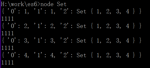 let set = new Set([1,2,3,4,4,4,4,4]);console.log( Array.from(set) ); //输出:[ 1, 2, 3, 4 ]
