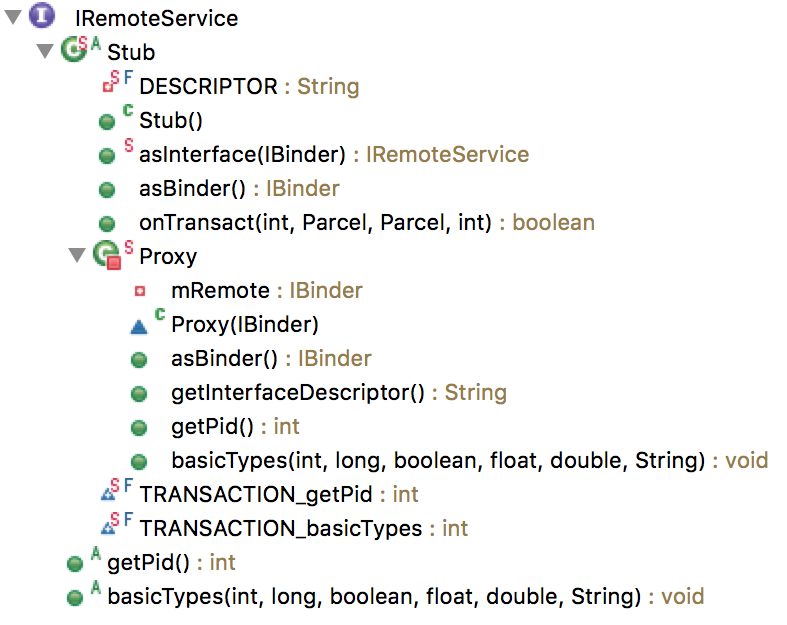 针对上面这个aidl文件生成的java文件中包含的结构如下图所示: