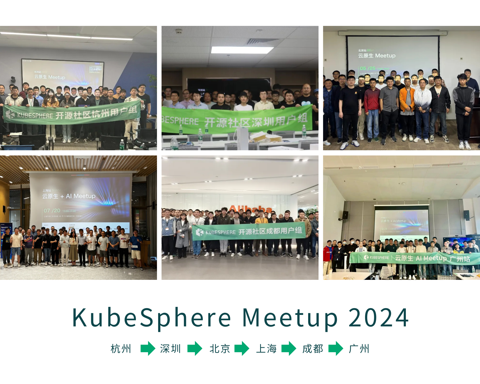 举办了 6 场线下 Meetup 和 6 场线上直播,覆盖全国多个城市及领域,为社区成员带来了深度的技术解读和实战分享。活动内容覆盖云原生与 AI 的交汇点,进一步拓展了 KubeSphere 的技术场景应用。