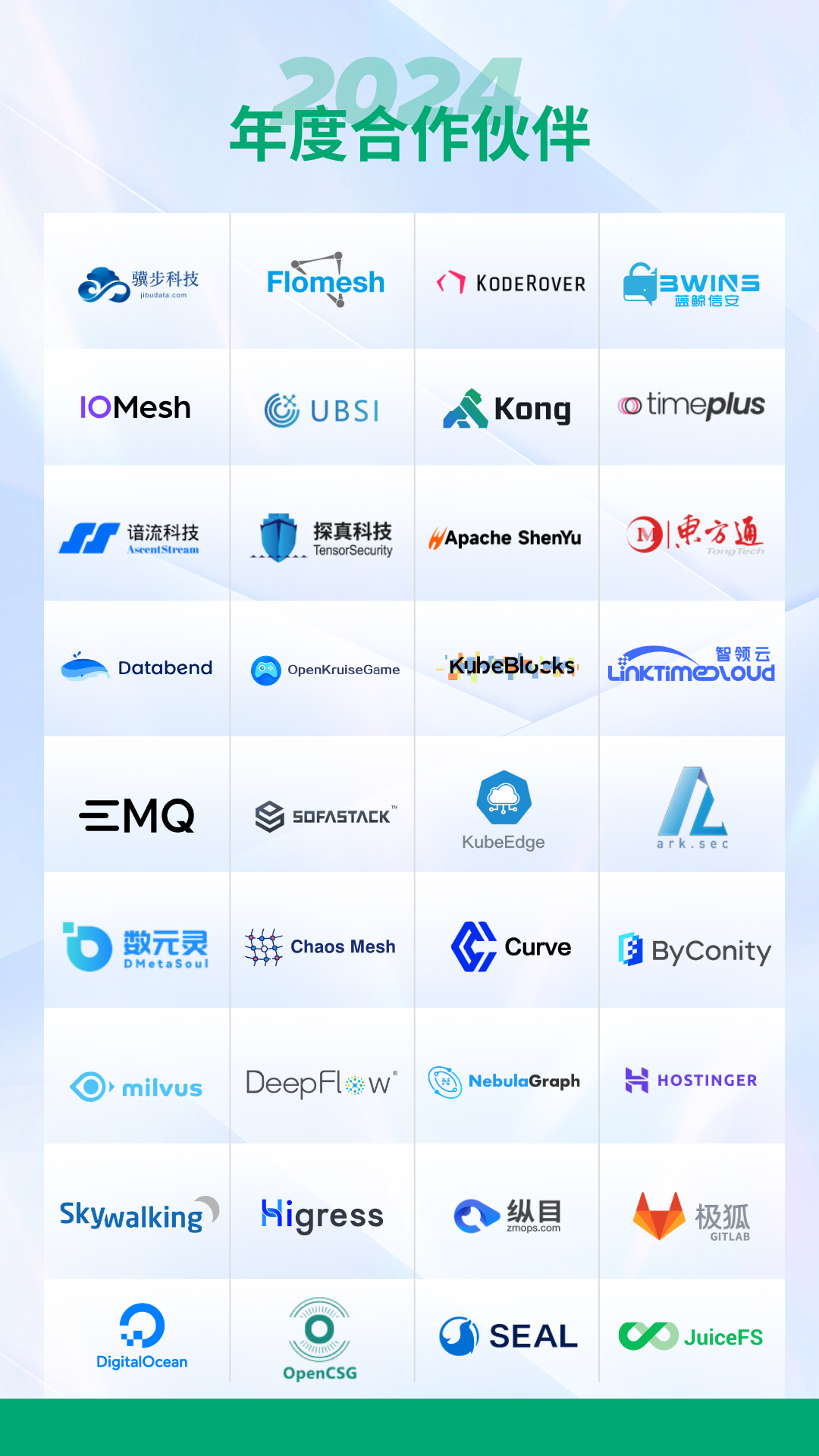 2024 年,我们进一步拓展了合作伙伴网络,深化了与开源社区和机构的合作,基于 LuBan 架构累计开发了 40 余款扩展组件,推动了生态的多样性与开放性。衷心感谢所有合作伙伴的支持与信任。