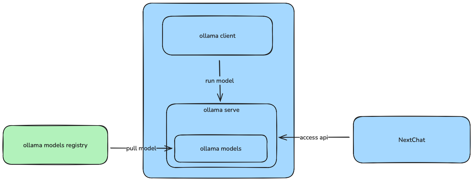 - 模型加载:当 Ollama 服务器收到 run model请求时,首先会检查本地路径(/root/.ollama/models)是否存在相应的模型。如果不存在,则从远程仓库拉取模型。
