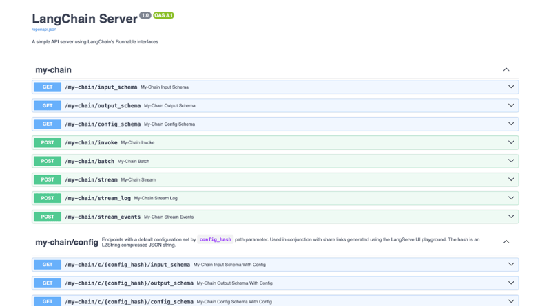 - 自动创建 API 文档: LangServe 自动为你的部署链创建交互式 API 文档,使他人(或者你未来的自己,如果你跟我一样)更容易理解和使用你的服务。
