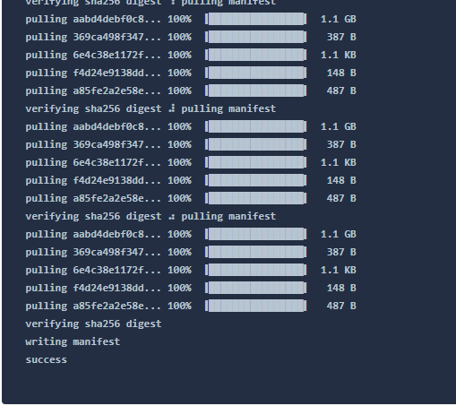 此时可以看到 ollama 正在下载 deepseek-r1:1.5b 模型