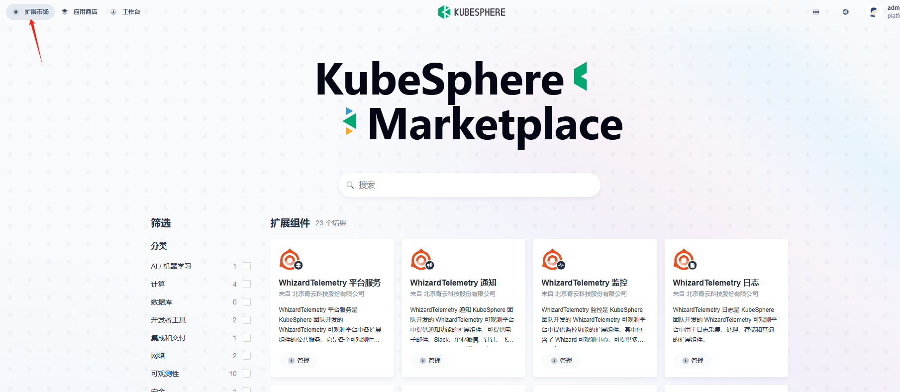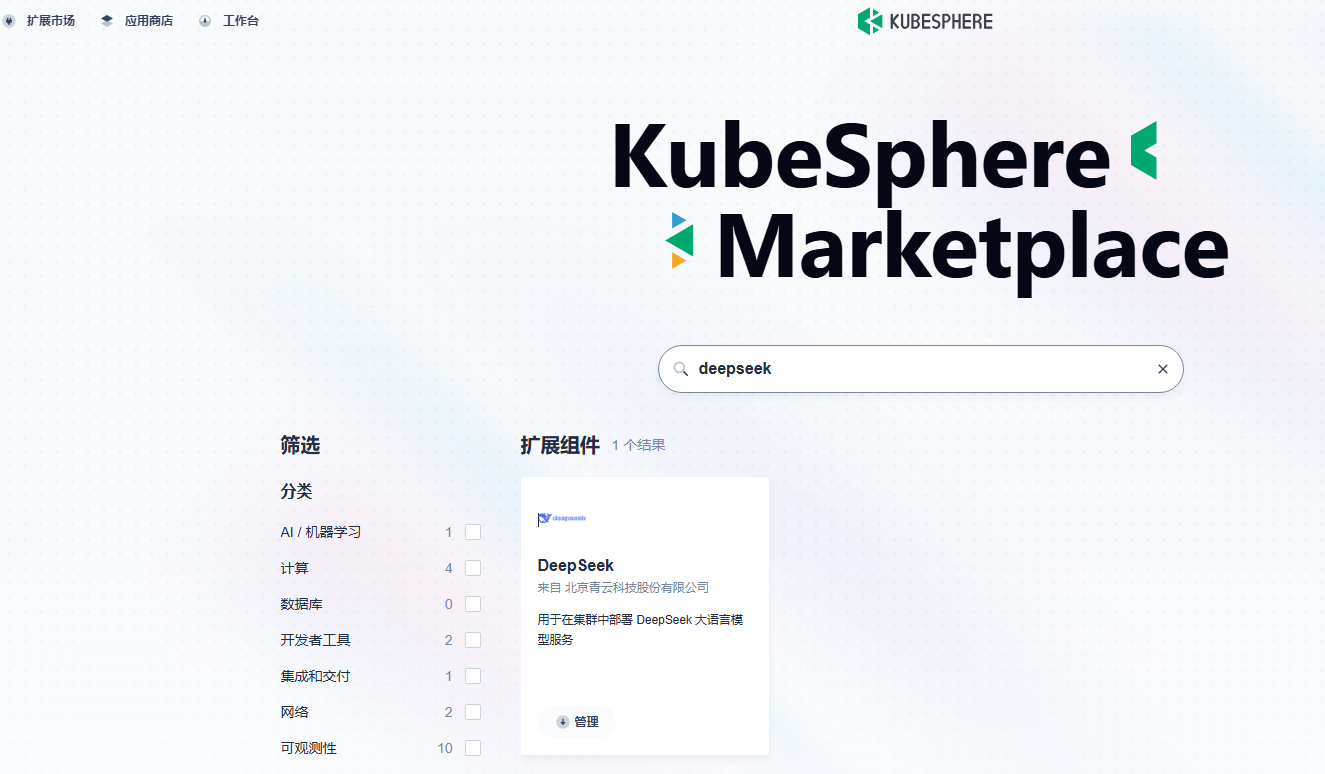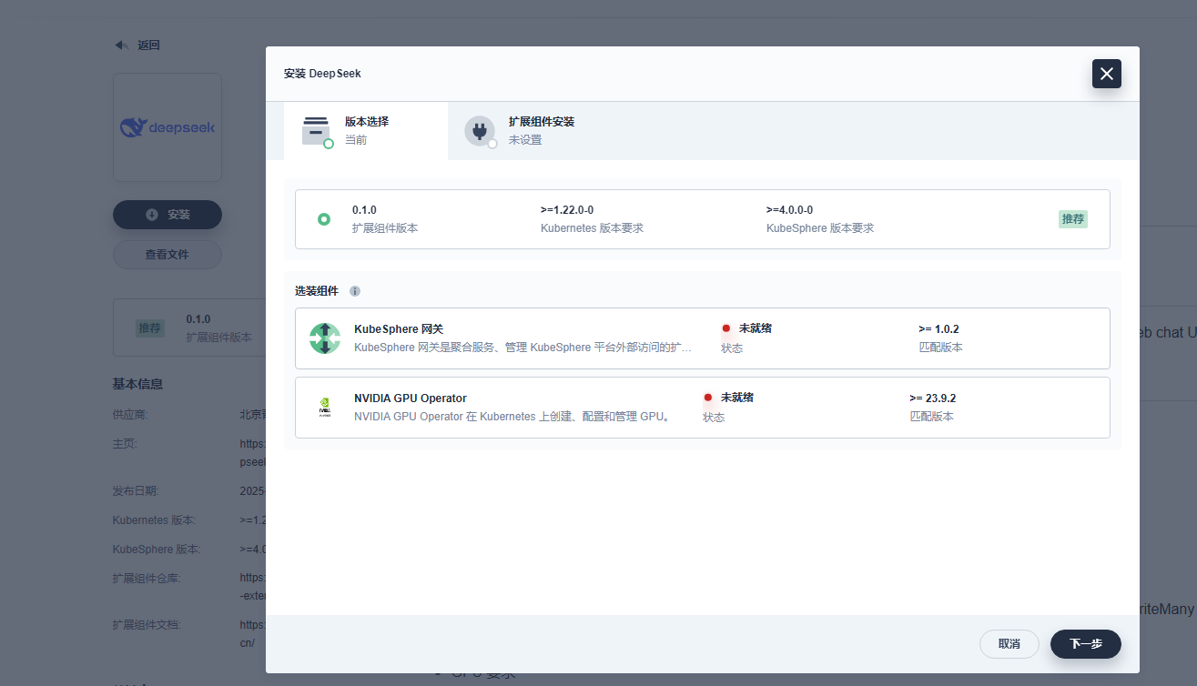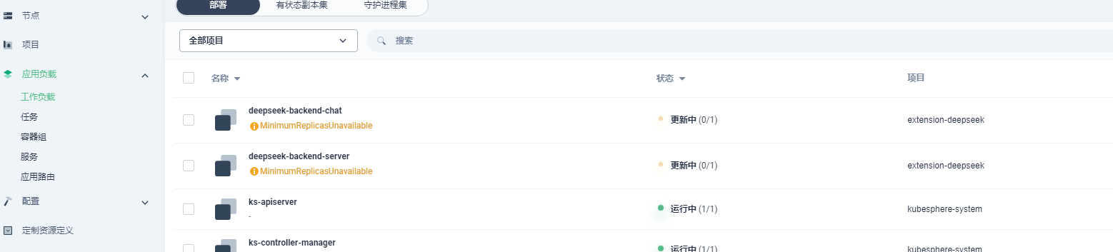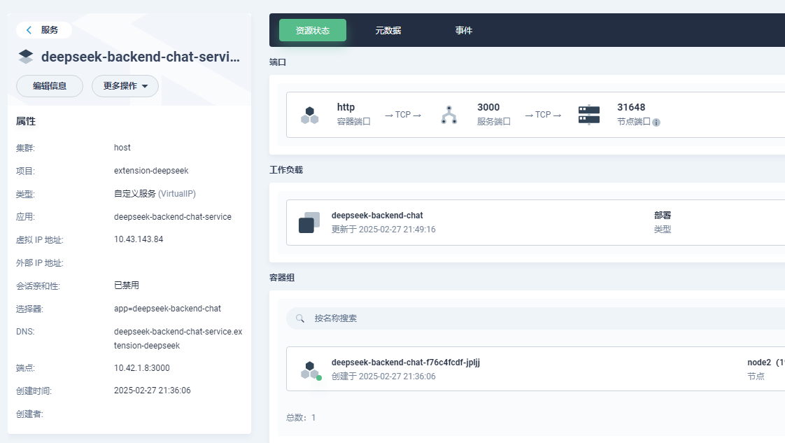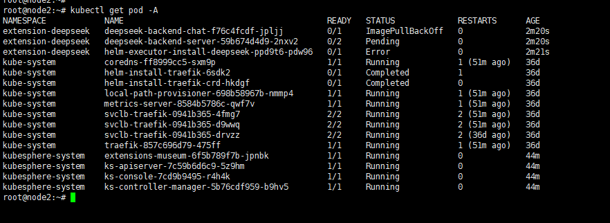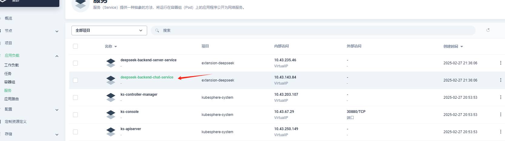 点击下一步安装后,到后台查看 pod,可以看到多了一个ns:extension-deepseek