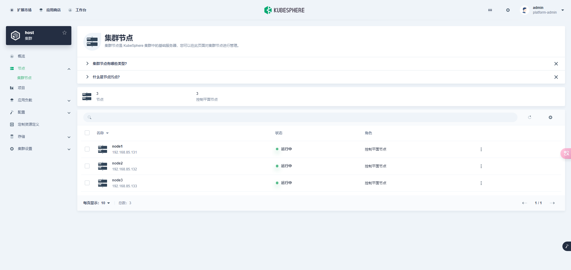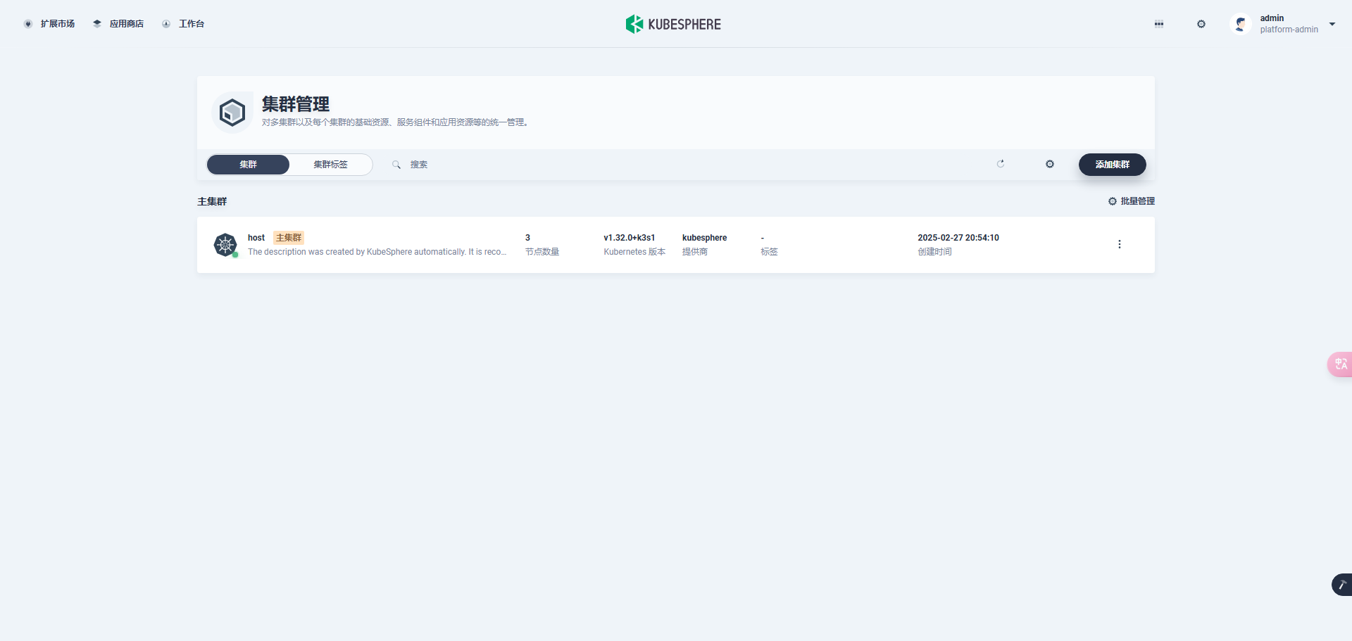 - 集群管理 支持集群联邦,此处可以展示多集群