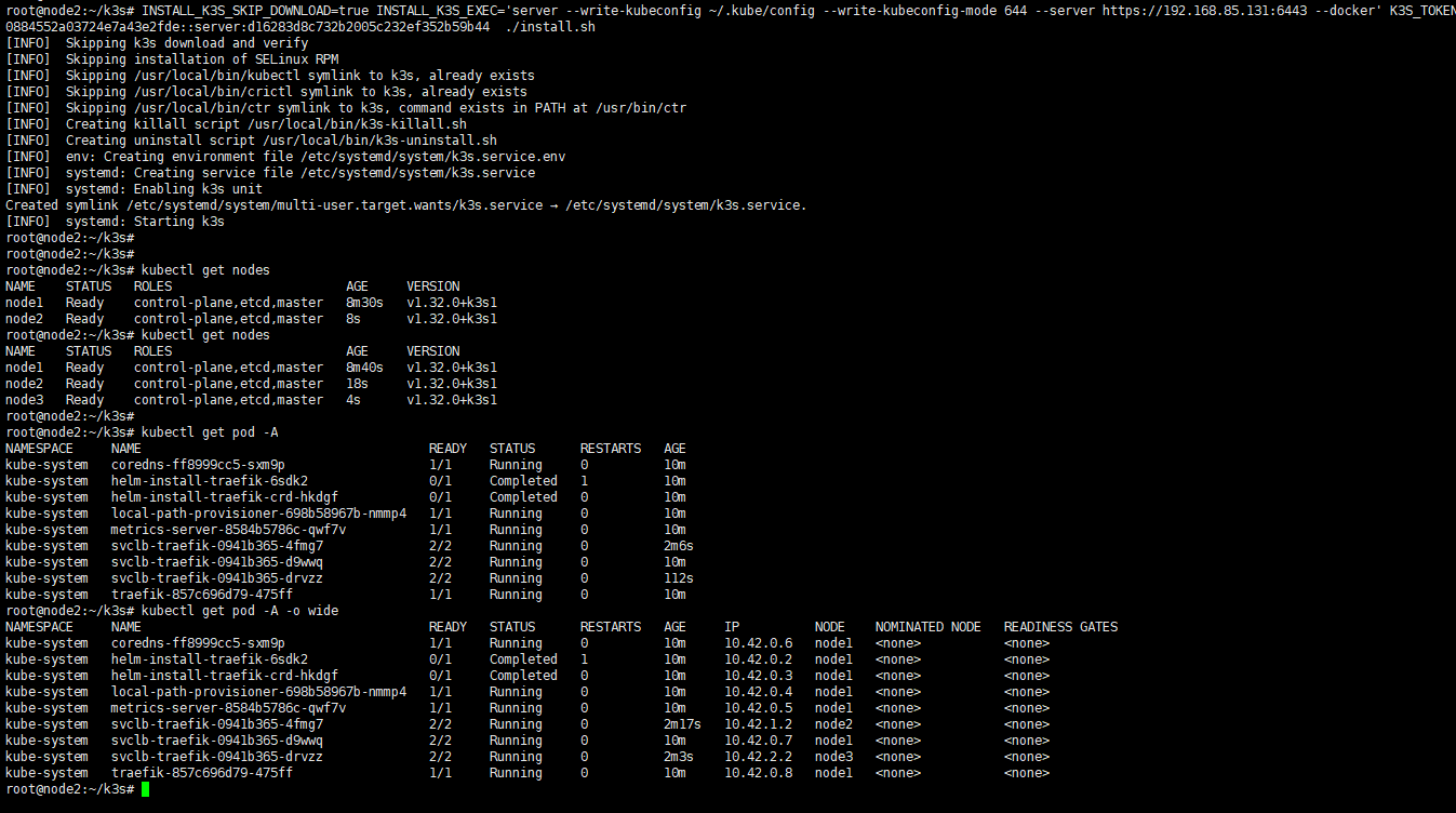 INSTALL_K3S_SKIP_DOWNLOAD=true INSTALL_K3S_EXEC='server --write-kubeconfig ~/.kube/config --write-kubeconfig-mode 644 --server https://192.168.85.131:6443 --docker' \
