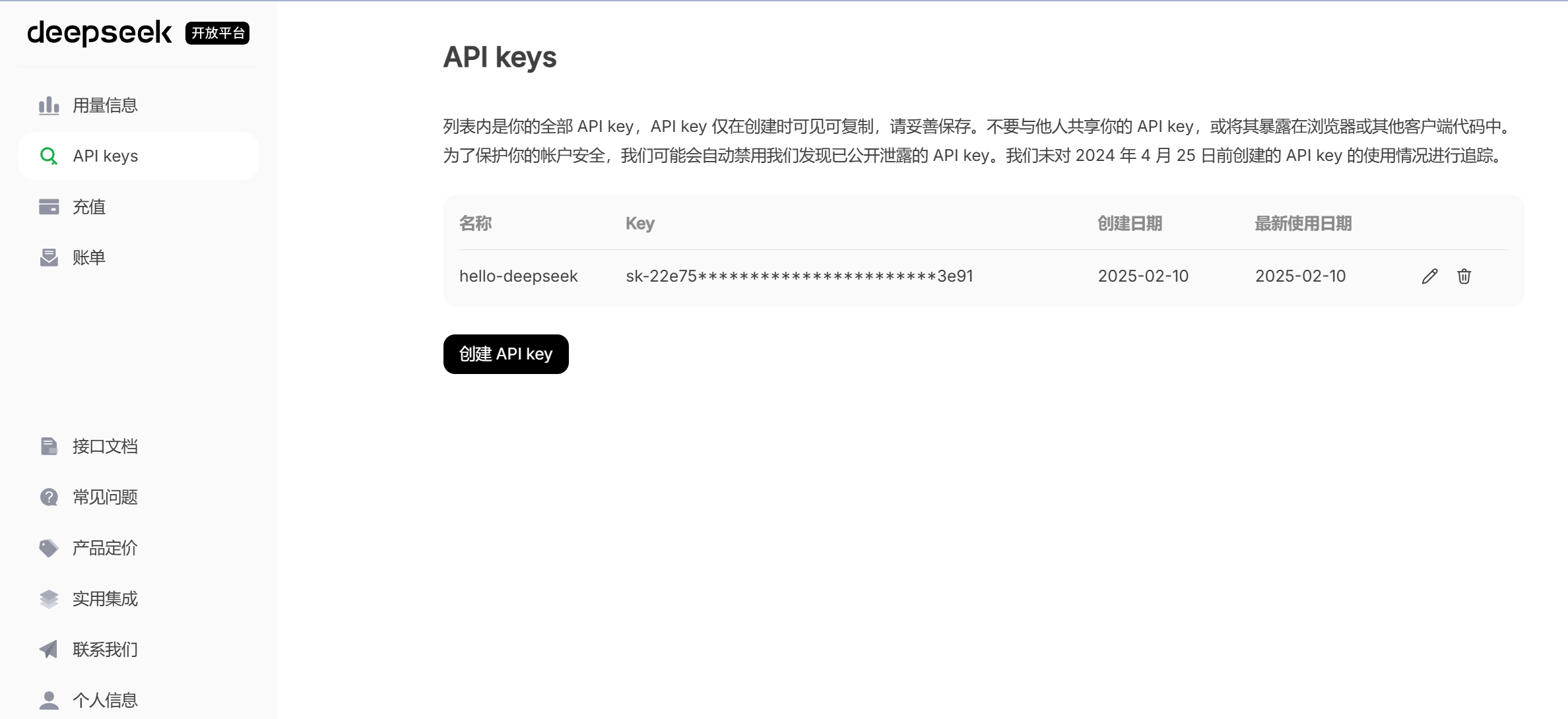 获取deepseek api的key