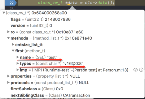 Person *person = [[Person alloc] init]; xx_objc_class *cls = (__bridge xx_objc_class *)[Person class];class_rw_t *data = cls->data();