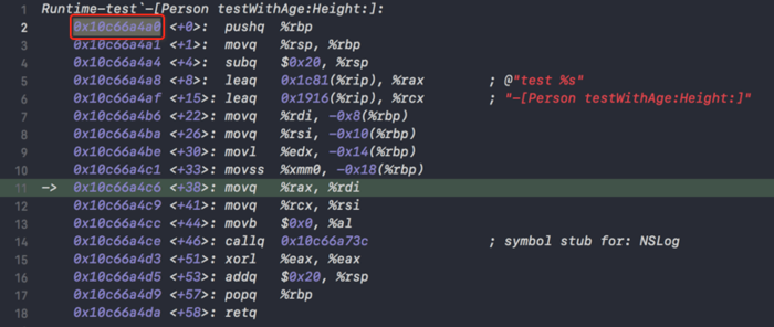 - (void) test; v 16 @ 0 : 8void id SEL// 16表示参数的占用空间大小,id后面跟的0表示从0位开始存储,id占8位空间。// SEL后面的8表示从第8位开始存储,SEL同样占8位空间