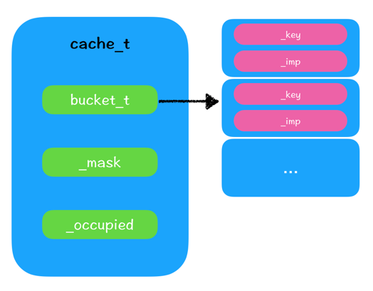 bucket_t bucket = buckets[i]; NSLog(@"%s %p", bucket._key, bucket._imp);
