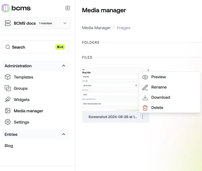 ✅ 您可以轻松地在 Next.js 项目中使用 BCMS 的文件夹系统上传和管理任何媒体(比其他系统要好得多)。查看 文档。