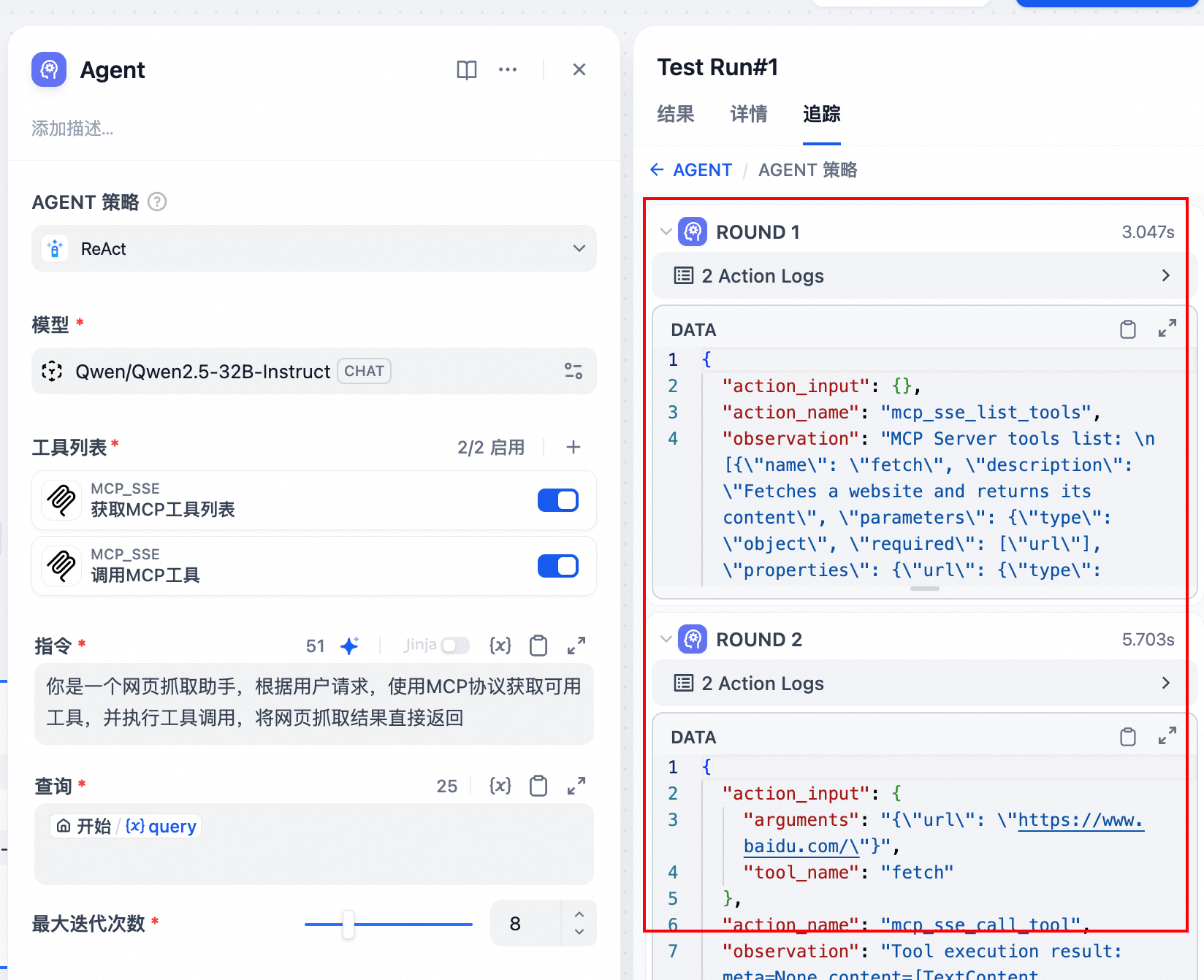 第二步: 在 SAE Dify 平台创建 Agent ,并使用 MCP 协议进行工具调用