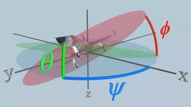 其对应的三个角度又分别成为 roll(横滚角),pitch(俯仰角)和 yaw(偏航角)。