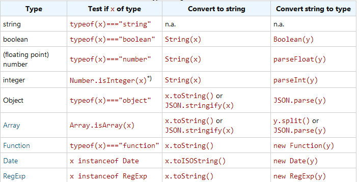 不幸的是,直到ES6才有Number.isInteger方法,用于测试一个数是不是一个整数。因此在还不支持它的浏览器中,为确保一个数字值是一个整数,或者一个数字的字符串被转换为一个整数,就必须使用parseInt函数。类似地,包含小数的字符串可用与parseFloat方法转换。将一个数子n转换成字符串,最好的方法是使用String(n)。