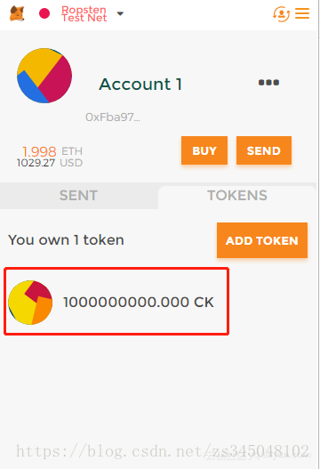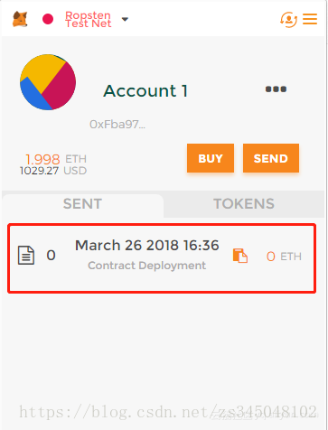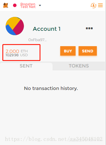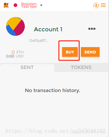 这时候会打开网页,点击图标(建议点一两次就ok,每次会给你的账户放1个ether,部署合约1个就已经搓搓有余。)(我在操作的时候,就没有成功打开点击BUY之后的页面,应该是因为没有翻墙,然后我是让同事给我的地址打了一些以太坊)。