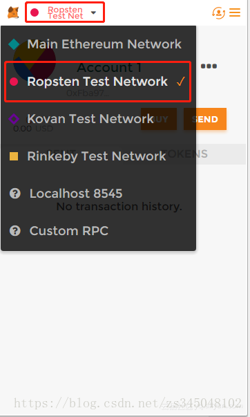 MetaMask使用(这个插件的安装,如果能翻墙,那么直接到谷歌商店里安装,如果不能,那么就百度搜索“谷歌浏览器插件”,然后会出来很多可以下载插件的网站,下载好之后想办法安装好插件,安装插件的方式如果不会,就百度吧)