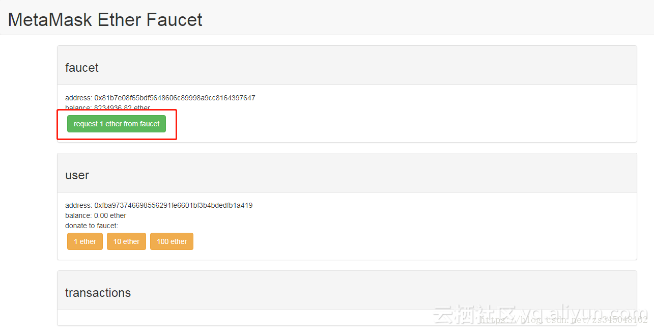 此时,我们发现我们的账户中没有ether,依次按照如下步骤获取: