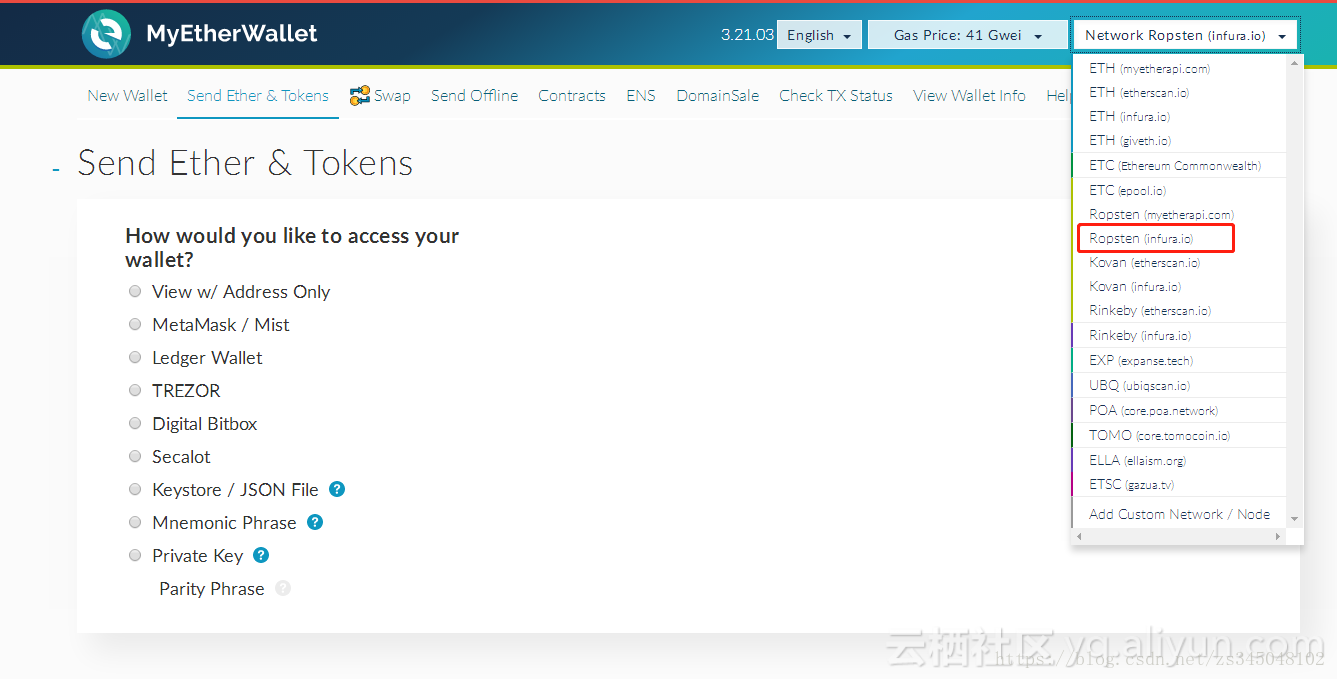 由于我们是要基于以太坊测试链发行代币,所以我们选择测试链: