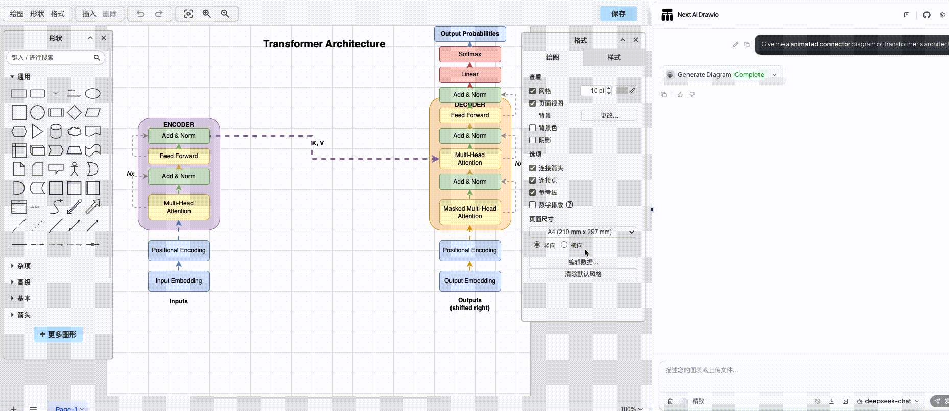 我个人还是比较喜欢 draw.io 那种清爽、专业的风格,但现在我用的 drawio 版本 AI 也使不上劲。所以我就在想,有没有一个AI + drawio 的结合体?我说需求,它出图,而且还能支持二次编辑?