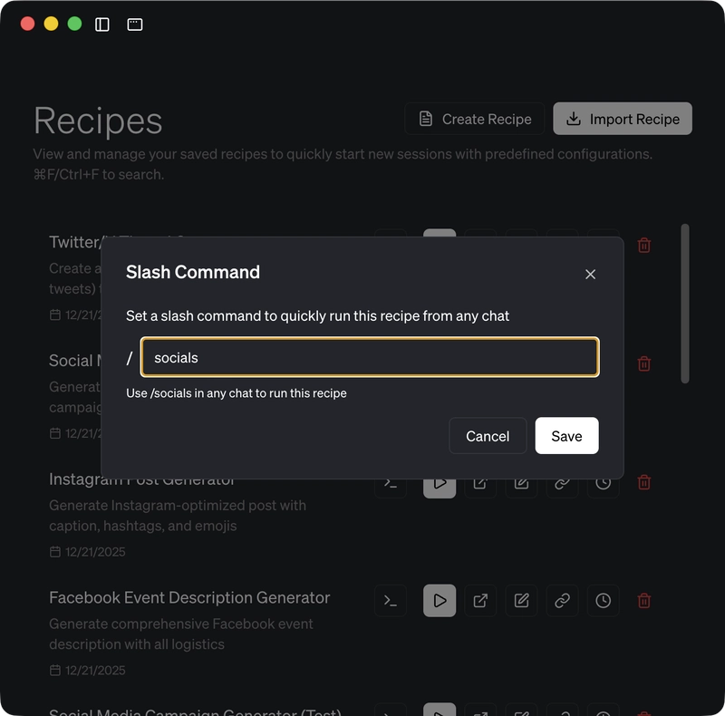 大多数 AI 工具仅提供保存的提示词或模板,而 Goose 的配方是具备实际能力的结构化工作流定义。