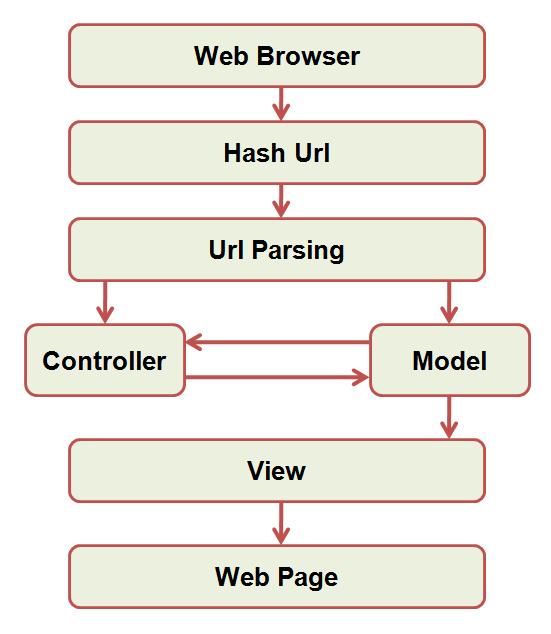 应用中的代码利用urls中的“#”实现MVC模式的导航。应用以一个缺省的url开始,基于哈希值的代码加载应用视图并且将对象-模型应用于视图模板。