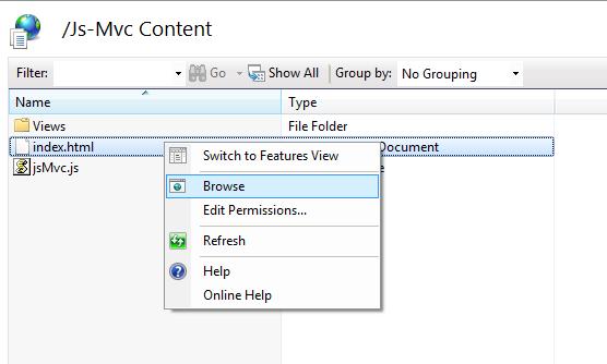 跑在服务器里是必要的,因为代码加载从存储于外部文件中的视图,浏览器不会允许我们的代码在非宿主服务器环境下执行。当然如果你使用Visual Studio那么直接在目标html文件上右键,选择‘View In Browser’即可。