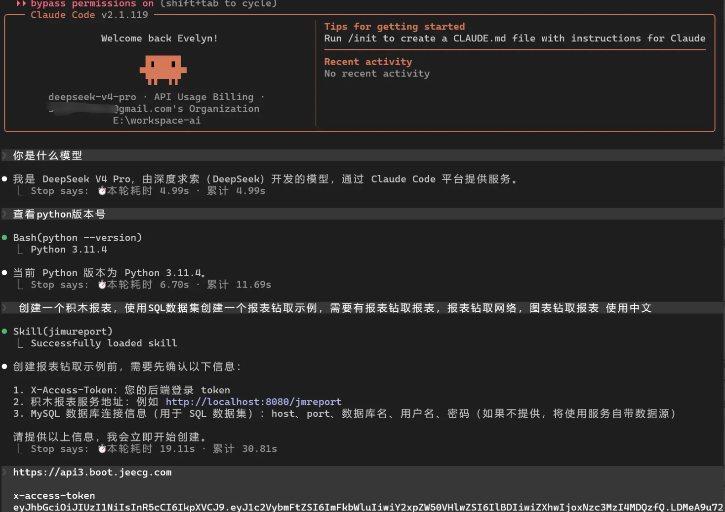 JeecgBoot AI专题研究 | 把 Claude Code 接入 DeepSeek V4-Pro,跑完 Skills —— OA 审批、大屏、报表、部署 5 大实战场景后的真实体验